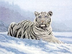 M1011 Siberian Tiger Cross Stitch Kit. Kit includes 16ct lt blue aida, Anchor floss,
