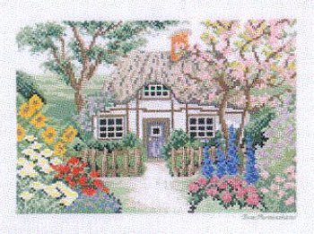 Complete kit includes 256 Ct. linen, threads, needle, and instructions. Finished size is 16" x 12".
